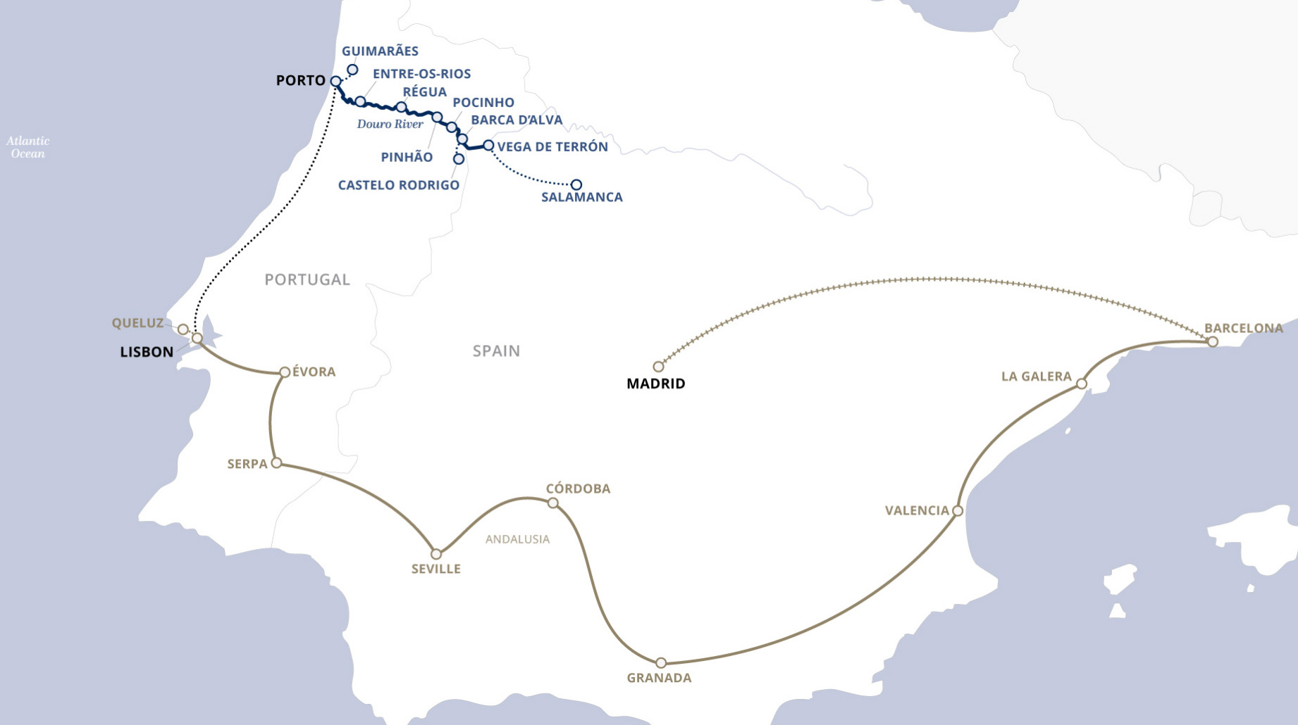 From the awe-inspiring collections of Madrid’s Prado Museum to the beautiful National Palace of Queluz in Portugal, your land tour of Iberia will leave its mark. Savor the region’s culinary delights with curated experiences, from Michelin-starred dining and market tastings to a hands-on cooking class, blending tradition with modern flair. In Granada, explore the Alhambra Palace's water gardens with a local expert. Wander through Seville’s whitewashed alleys, then enjoy a private flamenco performance in an 18th-century mansion. When your journey by land concludes, it’s time to board your cruise of the Douro River Valley. Sail past the steeply terraced hillsides, quaint villages, and acres of ripe vineyards that make up the UNESCO-designated landscape, heading ashore to visit charming quintas and meet the winemakers who operate them.